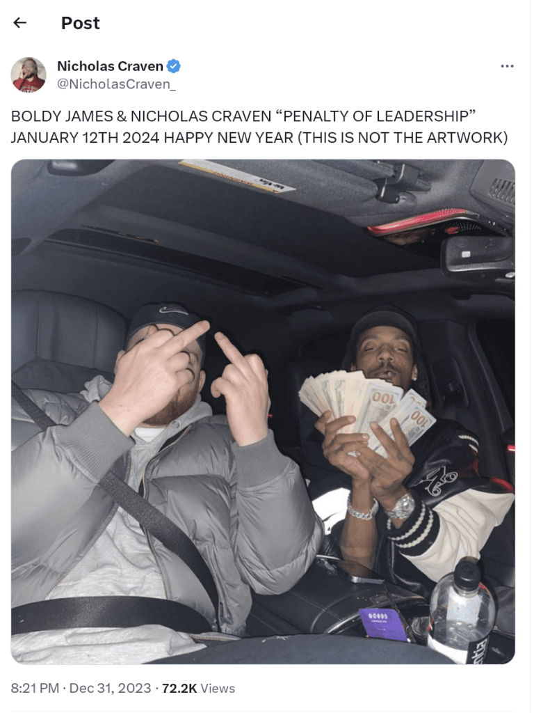 Detroit MC Boldy James will be teaming up with Canadian producer Nicholas Craven for a new album in 2024. Titled Penalty of Leadership, the album will release January 12th. The album will be eleven tracks long, with the artwork being done by Gallery Provence.