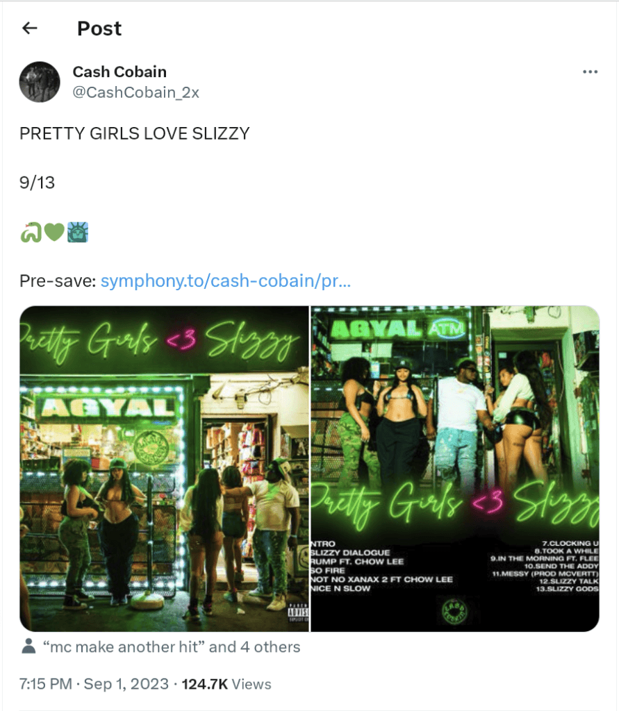 Bronx producer & rapper Cash Cobain will be releasing a new album in 2023. Titled PRETTY GIRLS LOVE SLIZZY, the album will release September 13th. The album will have features from Chow Lee & Flee, along with a production from MCVERTT.