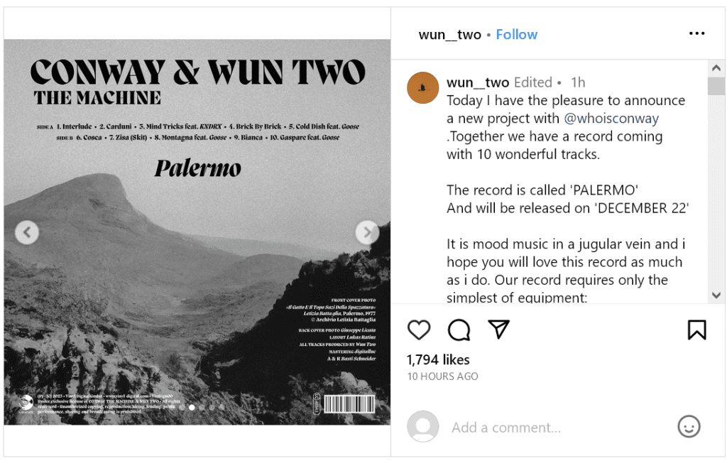 Buffalo, New York rapper Conway the Machine will be releasing a new album with producer Wun Two in 2023. Titled Palermo, the album will release December 22nd. Features on the album include Goose & KNDRX.