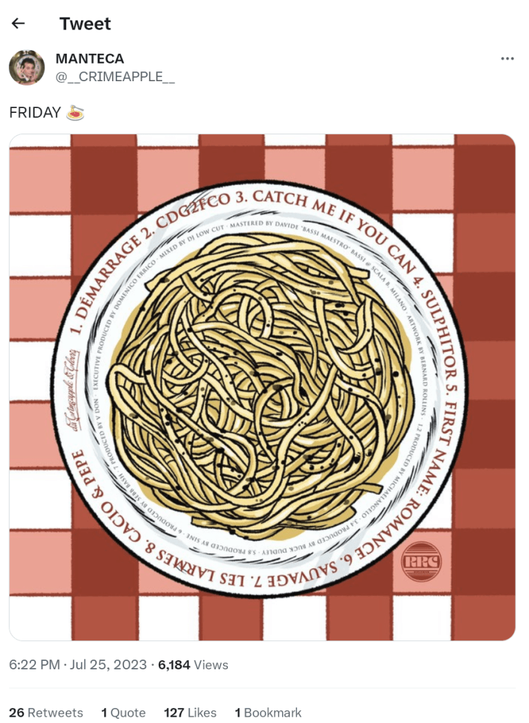 CRIMEAPPLE will be releasing another album in 2023. Third release of the year, the title of the album is Cacio & Pepe. It will release on July 28th, and come to eight tracks.