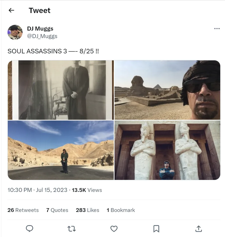 DJ Muggs New Album “Soul Assassins 3” Releasing August 25th Scott 08/05/2023 Posted in NewsShare: XFacebookReddit Follow @DopeGoAnywhere Legendary producer DJ Muggs will be back with the third release in his Soul Assassins series. Releasing August 25th, there are already two singles out from the album. There is no tracklist out yet, but the date was confirmed via Muggs’ Twitter.DJ MUGGS – We Riding We Ain’t Hiding (ft. T.F) DJ MUGGS – Jokers Wild (ft. CeeLo) Read more articlesFind our reviewsCheck out playlistsSubscribe to the official YouTube channel