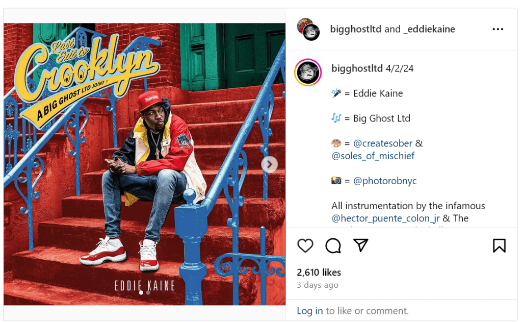 Brooklyn artist Eddie Kaine & producer Big Ghost Ltd. will be releasing a new album in 2024. Titled Last Exit to Crooklyn, the album will release April 2nd. The duo’s previous album was released October of 2021.