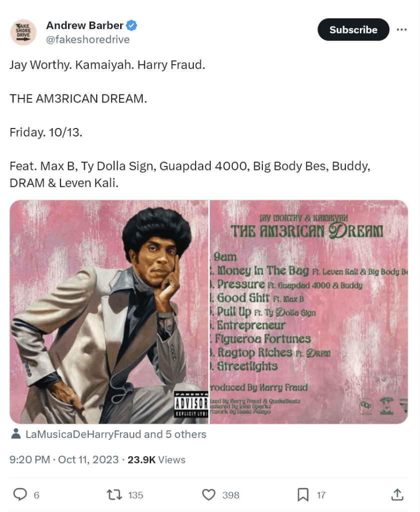 West coast rappers Jay Worthy & Kamaiyah will be teaming up with New York producer Harry Fraud for a new album in 2023. Titled The American Dream, the album will release October 13th. Features on the album will include Leven Kali, Big Body Bes, Max B and more.
