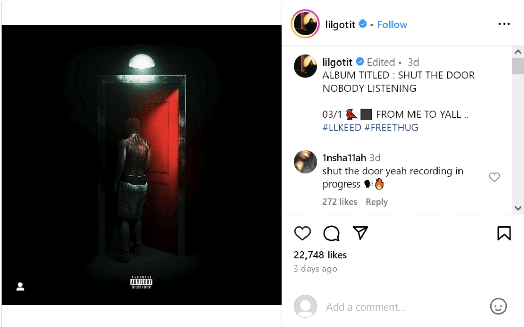 Atlanta rapper Lil Gotit will be releasing a new album in 2024. Titled Shut the Door Nobody Listening, the album will release March 1st. The project’s album art & release date were revealed via Instagram.