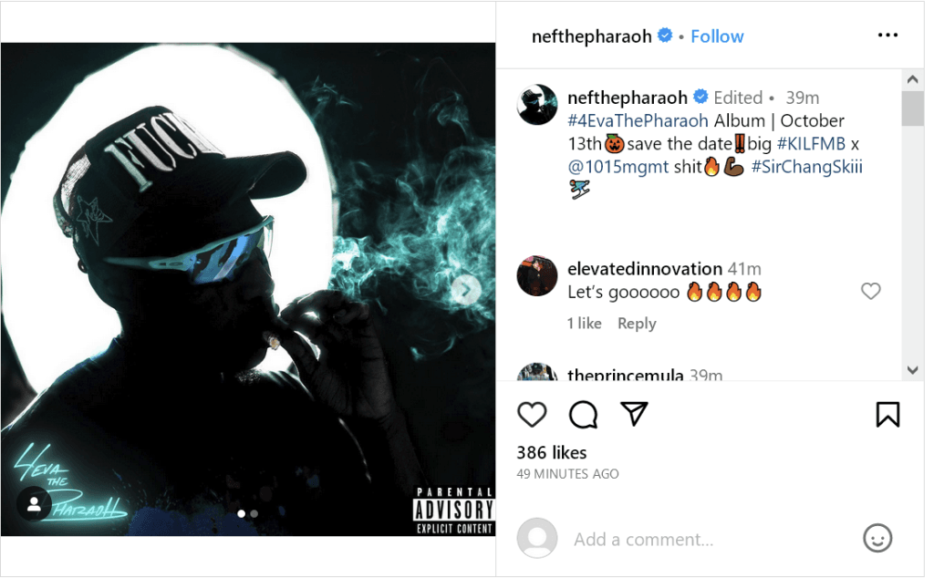 Vallejo, California rapper Nef The Pharaoh will be releasing a new album in 2023. Titled 4eva The Pharaoh, the album will release October 13th. The release date was announced via Instagram along with the cover art.