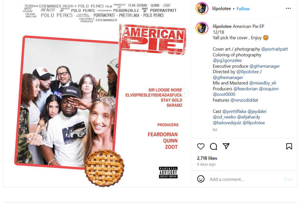 New York-based rapper Polo Perks <3 <3 <3 will be releasing a new EP in 2024. Titled American Pie, the EP will release December 18th. Producers on the project will include Feardorian, Quinn & Zoot.
