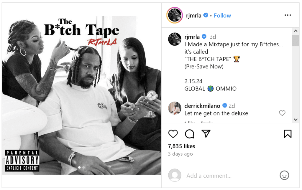 Los Angeles, California rapper RJmrLA will be releasing a new mixtape in 2024. Titled The Bitch Tape, the mixtape will release February 16th. Features on the mixtape include Ty Dolla $ign, Siete7x, Mike Wayne and more.