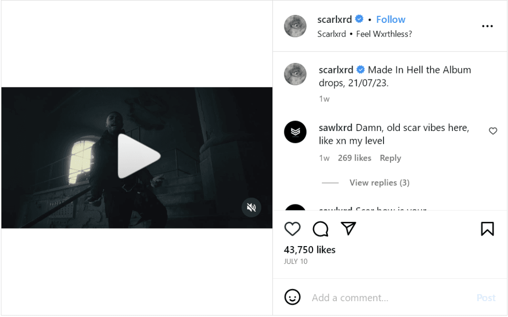Teased for a months now, UK artist Scarlxrd will be releasing a new album in 2023. There is no tracklist out yet, but the album’s release date was confirmed through an Instagram post. It will release July 21st, and will be titled Made in Hell.