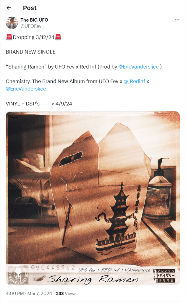 UFO Fev – Sharing Ramen (feat. Red Inf & Vanderslice)