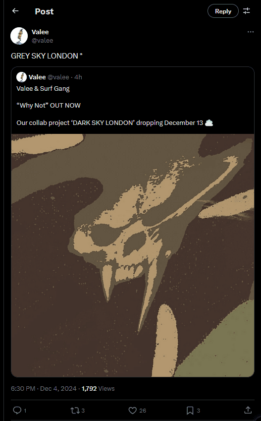Chicago rapper Valee & New York-based collective Surf Gang will be releasing a new collaborative album in 2024. Titled GREY SKY LONDON, the album will release December 13th. The single for the album, “WHY NOT,” is out now.